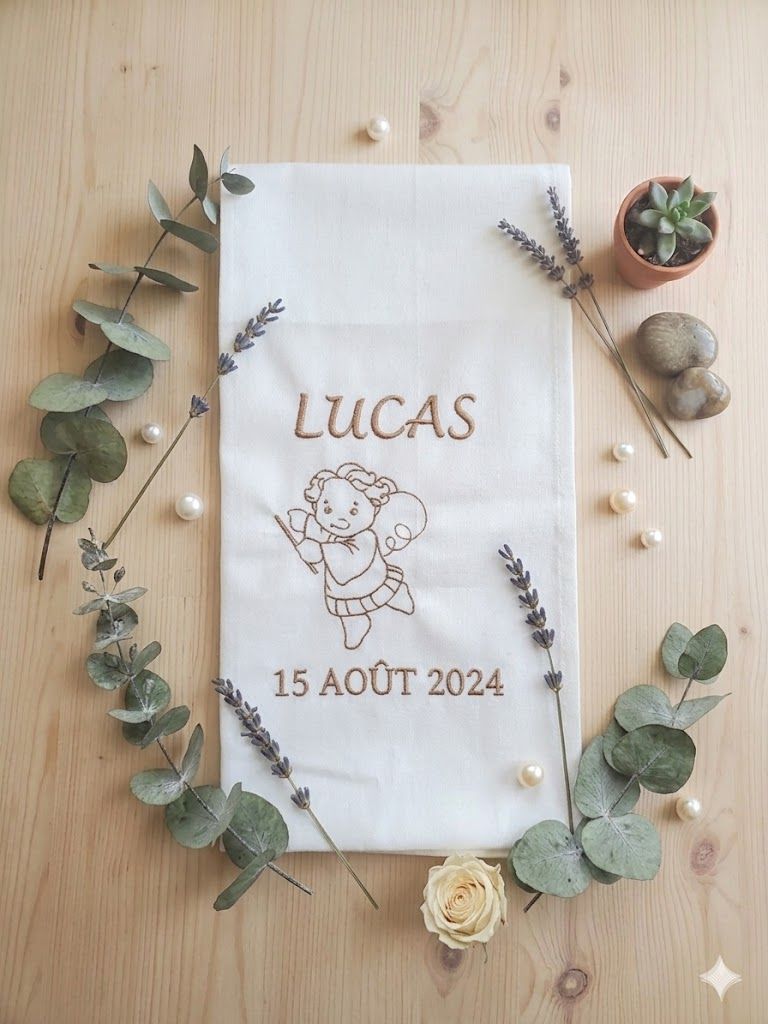 Je suis ravie de vous présenter cette création unique, conçue pour accompagner votre enfant lors de l'une des journées les plus importantes de sa vie. Cette écharpe de baptême n'est pas un simple accessoire ; c'est un symbole de pureté et d'entrée dans la communauté, un vêtement de lumière fabriqué avec le plus grand soin.Chaque écharpe que je crée est pensée comme un héritage familial, destiné à être transmis de génération en génération, tout comme les valeurs qu'elle représente.
