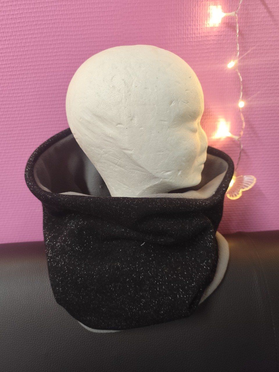 Tour de cou chaud et réversible, cousu dans de la polaire et du sweat provenant de chez Natacha.